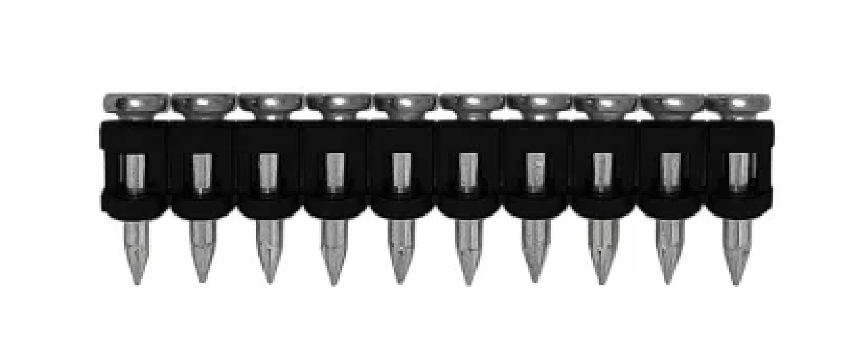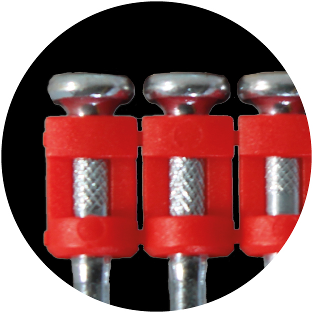 La surface striée du clou améliore l'adhérence sur des matériaux supports durs tels que le béton et l'acier.