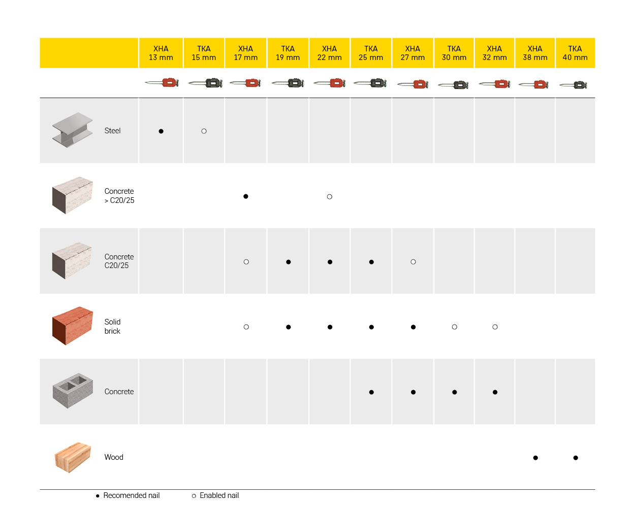 Clous en acier XHA à haut rendement pour matériaux supports durs et garantissant une productivité maximale