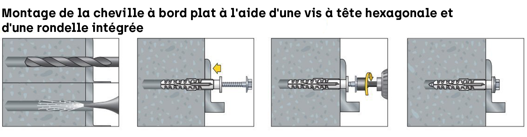 La MFR FB vous permet également de fixer le support en une seule étape car vous n'avez pas besoin de placer la cheville dans le mur avant de placer le support : percez le trou, montez le support, enfoncez la cheville et vissez. C'est aussi simple que cela !