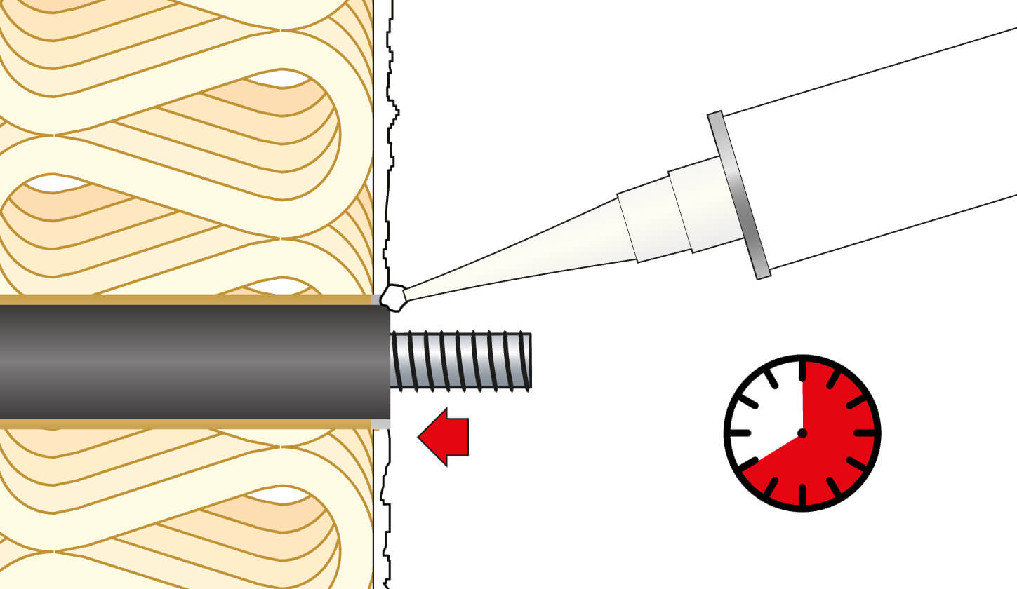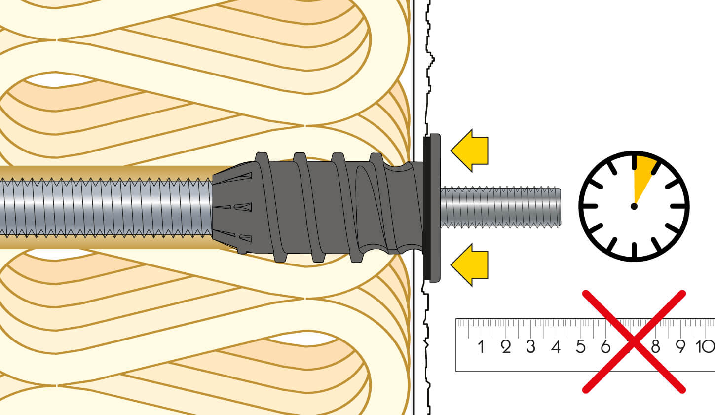 Avec ResiTHERM® 16, il n'y a aucun risque de placer l'ancrage robuste trop profondément dans le trou de perçage. Les fuites ou la formation de moisissures étaient à craindre avec les solutions conventionnelles en raison du glissement ou d'une installation trop profonde dans le trou de perçage. Avec ResiTHERM® 16, en revanche, la tête avec le disque d'étanchéité intégré repose sur le plâtre et empêche tout glissement dans le trou de perçage.