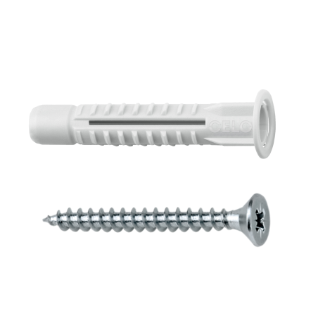 La cheville CELO multiusage MZK a fait ses preuves des milliers de fois, elle est adaptée à pratiquement tout type de matériau support. Ses 4 ailettes d'expansion pemettent une fixation sûre tant sur matériau support plein que creux, grâce au noeu qu'elle forme sur la brique ou plaque de plâtre. Ses valeurs de charge sont élevées. Sa collerette évite l'enfoncement de la cheville lors du vissage. Cette dernière est en outre compatible avec de très nombreux types et dimensions de vis. La cheville multifonctionnelle MZK est fabriquée en polyéthylène de qualité supérieure qui assure une élasticité et une qualité de noeu durables.